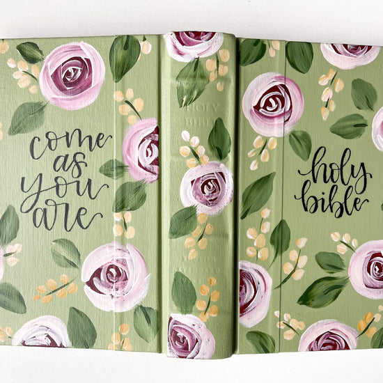 Our wide variety of custom-designed Wheat and Honey co. hand painted Bibles are created by our team of female artists around the country and made uniquely for you. Shop our ready to ship ESV Journaling Bibles for an intentional and personalized gift for yourself or a loved one. Our Bibles are perfect for the gal that loves Bible journaling and Bible study. Each design is one-of-a-kind like our relationship with Christ featuring a mix of design and hand lettering. Our Bibles make great birthday, graduation, Mother's Day, Baptism or Confirmation, Wedding or Baby Shower Guest Book, or Anniversary gifts. Each purchase supports our give back mission of gifting Bibles to women overcoming sex trafficking. All orders arrive to your doorstep within 5 days of your order. We cannot wait to get your one-of-a-kind Bible to you!