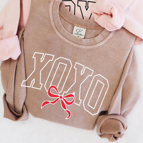 XOXO BOW Cropped Thermal Vintage Pullover Oversized sweatshirt with a super soft, vintage wash corded fabric.